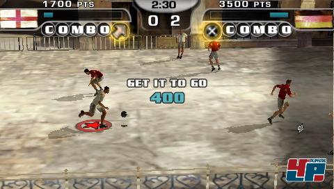Obwohl ihr mit eurer Punktzahl keine Spiele gewinnen könnt, sind die Tricks dennoch von großer Bedeutung und laden auch hier die Gamebreaker-Leiste auf. Allerdings könnt ihr auf der PSP der gegnerischen Mannschaft keine Tore mehr abluchsen oder die Spieler bis zum K.O. tricksen. Hier lasst ihr nur einen Hammer-Schuss vom Stapel, der dann hoffentlich den Weg ins Netz findet. Während ihr die Tricks auf den Gamepads noch komfortabel mit dem Trick-Stick ausführen konntet, ist die Ballzauberei auf Sonys Handheld nur noch durch eine Kombination aus Analognippel und der Dreieck-Taste möglich und damit entsprechend fummelig. Wer aufmerksam ist, kann seinen Gegnern die Trick-Show vermiesen, indem blitzschnell der auf dem Bildschirm angezeigte Knopf gedrückt wird, mit dem ihr einen Konter ausführt.