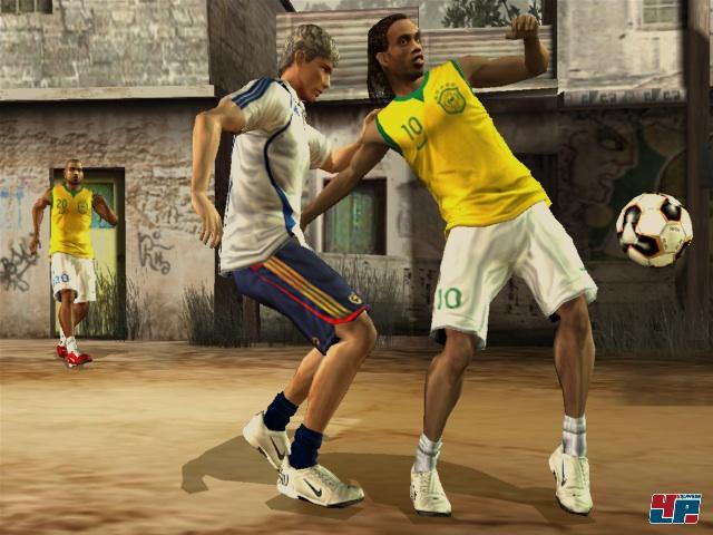 Wow, einfach unglaublich, was die Spieler in Fifa Street 2 so alles mit einem Fußball anstellen können: Ein Druck auf den rechten Analogstick genügt und schon fangen sie bei einem Zweikampf an zu zaubern, tunneln den Ball zwischen den Beinen des Gegners hindurch, nutzen