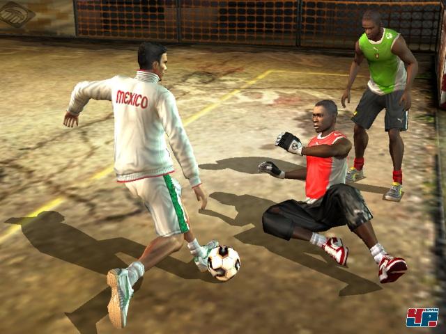 Wände als Banden, verwirren die andere Mannschaft mit spektakulären Zuspielen, täuschen kurz an und lassen den überrumpelten Gegenspieler nach einer Drehung hinter sich oder zeigen Tricks, die man normalerweise höchstens Brasilianern in ihren besten Zeiten zutrauen würde.Was ihr in den ersten Minuten an herrlich animierten Bewegungsabläufen seht, lässt sich mit dem Trickstick und der Kombination anderer Tasten kinderleicht ausführen. Diese Aktionen dienen nicht nur der Unterhaltung und Demütigung eures Gegenübers, sondern bauen gleichzeitig eure Gamebreaker-Leiste auf: Ist sie gefüllt, rennt ihr zur Mitte des Platzes und habt anschließend die Wahl, ob ihr die drei gegnerischen Akteure während des Gamebreakers bis zum K.O. austrickst und deren Tore auf das eigene Konto übertragt, oder den Ball gleich mit einem Knaller-Schuss im Netz versenkt – und das alles natürlich unter Zeitdruck. Zwar hat man neuerdings die Möglichkeit, Tricks zu blocken, doch sind die Erfolgsquoten relativ gering. Schade, denn hat man die Geschichte mit dem Gamebreaker und den Tricks erst richtig drauf, kann eine Begegnung schon innerhalb weniger Minuten beendet sein.