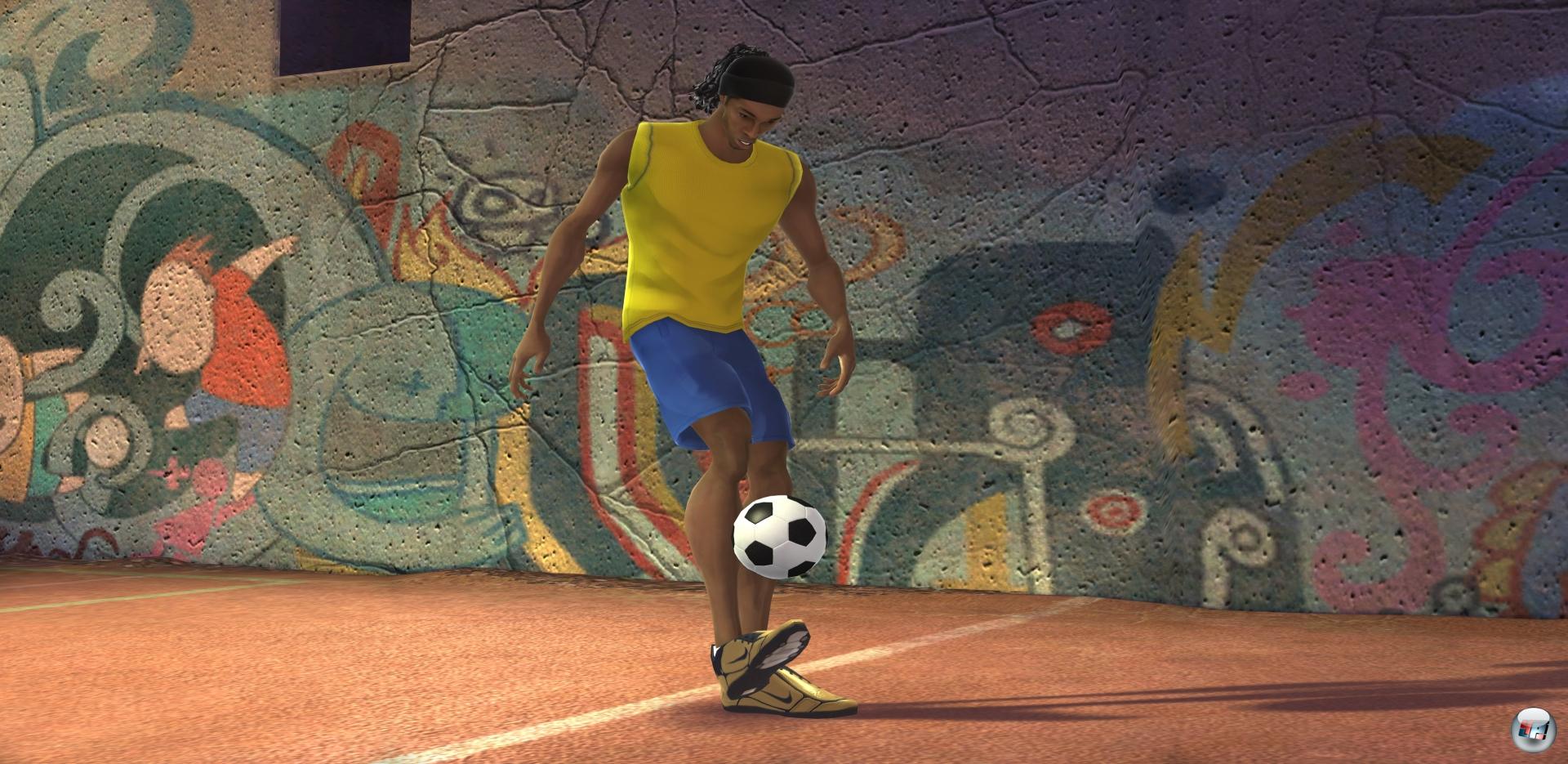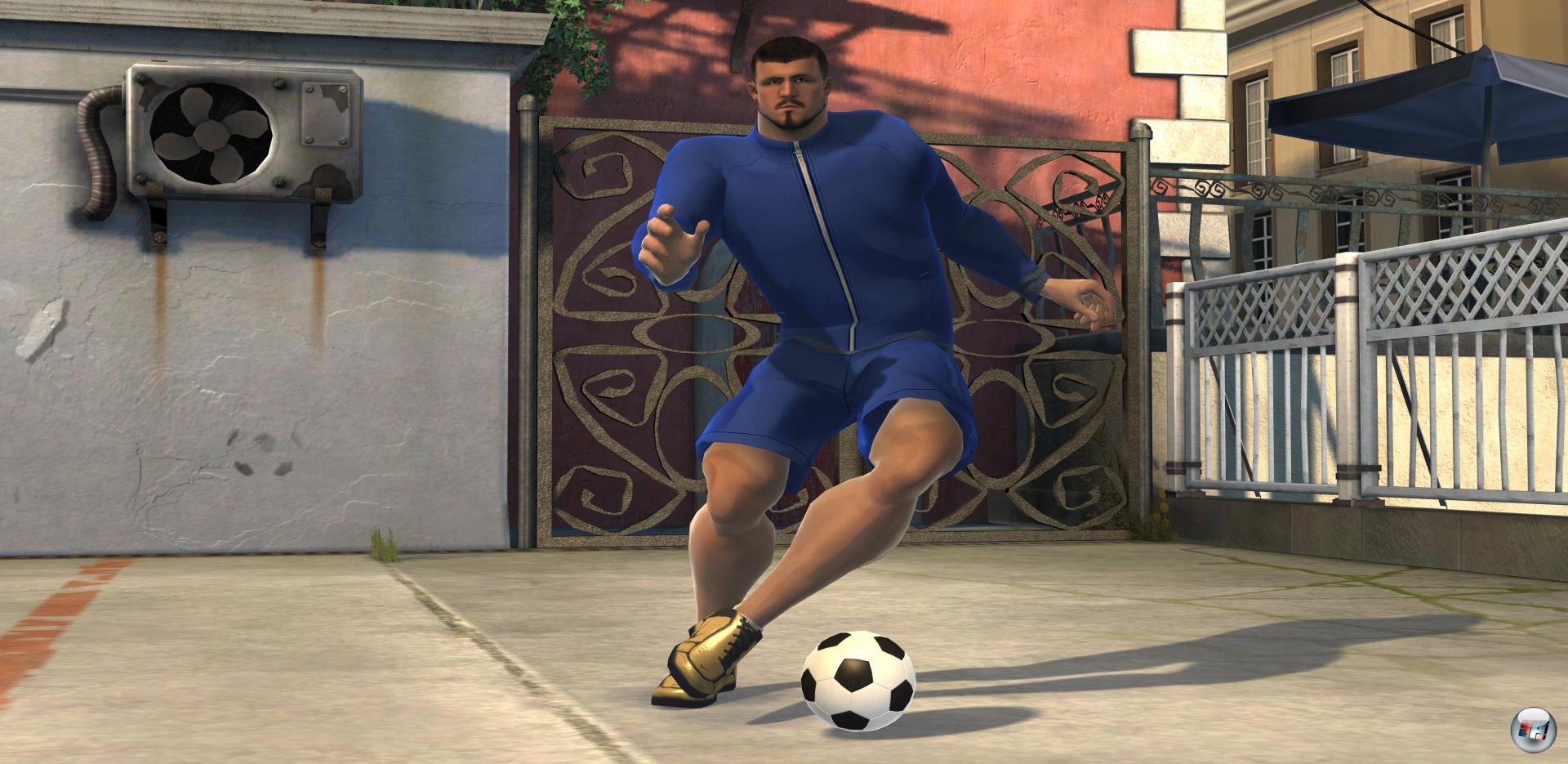 Neben dem Comic-Stil sind es vor allem die Animationen der Ballkünstler, die in den Partien für Aufsehen sorgen, obwohl das Trick-Repertoire relativ begrenzt ist und man so schnell alle möglichen Moves zu Gesicht bekommt. Auch wirken die Animationen vor allem bei Verteidigungsaktionen wie Grätschen oft etwas abgehakt. Die Kulissen sind trotz cooler Locations dagegen nur durchschnittlich und etwas steril, denn abseits der Bolzplätze ist so gut wie gar nichts los. Zumindest aber setzen die beiden Kameraperspektiven „Action“ und „Seitenlinie“ das Geschehen gut in Szene, wobei letztere Einstellung eine bessere Übersicht liefert, so dass sich Spielzüge hier besser planen und vorbereiten lassen. Wie so oft bei EA-Titeln gibt es aber auch bei Fifa Street 3 wieder einen deutlichen Unterschied zwischen PS3 und Xbox 360. Bereits auf einem Event verriet uns einer der Produzenten, dass die Version für die Sony-Konsole mit maximal 30 Frames pro Sekunde auskommen muss, während es auf der 360 mit 60 Frames noch flüssiger zur Sache geht. Hinzu gesellen sich üble Flimmerkanten sowie verwaschene Farben bei den Texturen, weshalb die PS3-Version grafisch erneut merklich abfällt. Was soll denn das?