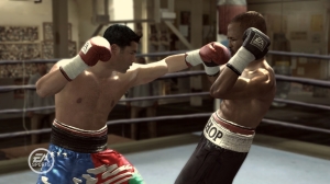 Seid ihr schon KO? Schon auf dem Weg zum Shop? Dann reißt euch wieder zusammen, denn es gibt einen Dämpfer für alle, die keine 360 haben: Im direkten Vergleich sehen Xbox- und PS2-Fassung einfach scheiße aus. Hört sich hart und derb an, ist aber genau so. Tatsächlich gleichen sie Round 2, das 2005 hervorragend aussah, fast aufs Pixel. Aber wenn man einmal die 360-Variante gespielt hat, fällt der Griff zu ihnen ziemlich schwer. Darüber hinaus fehlen den Ottonormal-Fassungen praktisch alle Grafikschmankerl: keine brachialen Nahaufnahmen, die Menüs sind schlecht lesbar, die 3D-Modelle deutlich grober, das Bitmap-Publikum rotzhässlich.