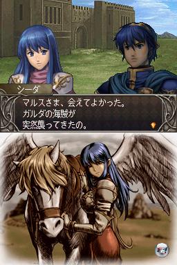 | Shiida und Marth – hier in der japanischen Version. Fire Emblem für DS beruht auf dem ersten NES-Teil der Serie aus dem Jahr 1990, der nie in Europa erschien. |