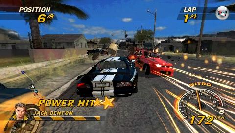 Falls euch Carnage und FlatOut nicht reichen, könnt ihr als Solist auch euer Glück an den Einzel-Events versuchen: Hier könnt ihr unter dem gesamten Angebot wählen; Einzelrennen, -Stunts, -Events und -Derbys prädestinieren diese Spielvariante als Übungsplatz. Und natürlich müsst ihr euer Raser-Dasein nicht allein fristen: Bis zu sieben Freunde dürft ihr zu einer geselligen Runde zusammensetzen, in der die PSP herumgereicht wird – die Stunt-Highscorejagd ruft! Falls ihr Live-Action bevorzugt, dann sucht euch besser drei Freunde, die ebenfalls die UMD haben, denn mit denen dürft ihr auch gegeneinander Rennen fahren – allerdings nur lokal, ein Online-Modus war technisch nicht drin.