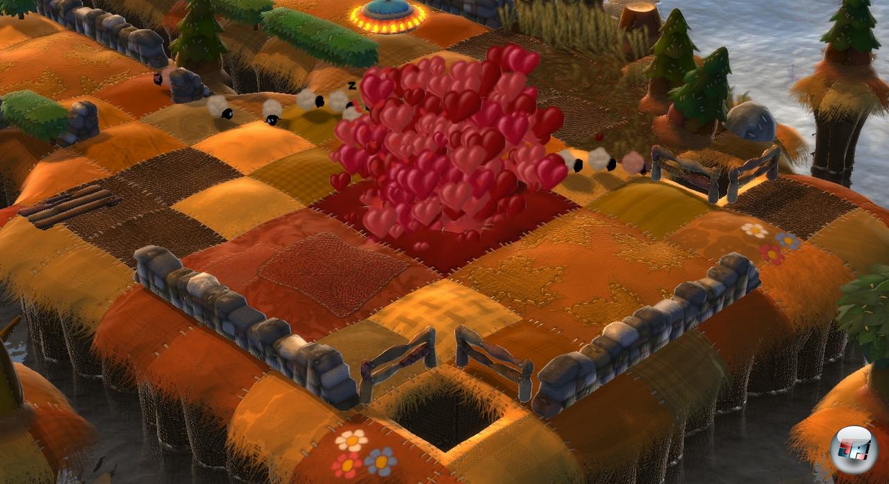 Papa Schaf zum wilden Knutschen treffen, woraufhin Bienchen und Blümchen ihre Arbeit aufnehmen und kleine Babyschafe dabei herauskommen. All dies kann man entweder allein oder gemeinsam mit einem befreundeten Menschenschaf erleben (nur lokal, nicht online), wobei die Levels für Einzel- und Grüppchenspieler unterschiedlich sind. Wem die immer noch nicht reichen, der kann auch zum beiliegenden Editor greifen, mit dem sich im Schafumdrehen eigene Treibjagd-Szenarien basteln lassen – entsprechende Bauteile werden in der Kampagne freigeschaltet. In diesem Zusammenhang gewinnt auch die Online-Komponente an Bedeutung: Man kann von anderen Spielern zusammengeschraubte Levels herunterladen und lokal zocken.