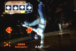 Das Grundprinzip aller DDR-Ableger (Dance Dance Revolution) ist fast immer gleich und identisch zum Vorbild: Auf der linken Bildschirmseite befinden sich vier in alle Himmelsrichtungen zeigenden Pfeile, von unten rauschen mehr oder weniger schnell weitere ins Bild – diese müssen, sobald sie ihre Richtungs-Pendants überlagern auf der Tanzmatte bzw. dem Gamepad gedrückt werden. Denn nur wenn der Flow stimmt (ahaaaa!), dann geht im Hintergrund die Post ab. Dort zappelt sich nämlich einer von zehn Breakdancern (fünf davon sind erst freizuspielen) die Hüftgelenke aus dem Leib. Jeder der männlichen und weiblichen
