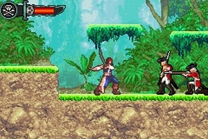 Amaze haben mich in dieser Beziehung maßlos enttäuscht und ich schiebe das GBA-Modul eher lustlos als neugierig in den Handheld-Schacht.Da ihr auch auf Nintendos Kleinem grob dem Plot des Films folgt, nehmen die Ereignisse ihren Lauf im Gefängnis, aus dem ihr mit dem Vorzeigecharakter Jack Sparrow fliehen müsst. Sowohl die Briten als auch Ork-ähnliche Fantasywesen stellen sich euch in den Weg. Auf dem GBA findet die Action allerdings nur in zwei Dimensionen statt, so dass ihr euch durch ein Action-Adventure im Stil von Prince of Persia schlagt. Natürlich gibt es aber viel Säbelrasseln statt akrobatischen Herausforderungen: Doppelsprung, schöne Animationen und verschiedene Angriffe (u.a. ein cooler Rutsch in die Beine der Widersacher) – das spielt sich flott und sieht gut aus. Im Ansatz macht Amaze auch auf dem GBA alles richtig. Aber überfluten mich später erneut ewig gleiche Gegner, ohne wenigstens den Hauch von Spannung zu entfachen?