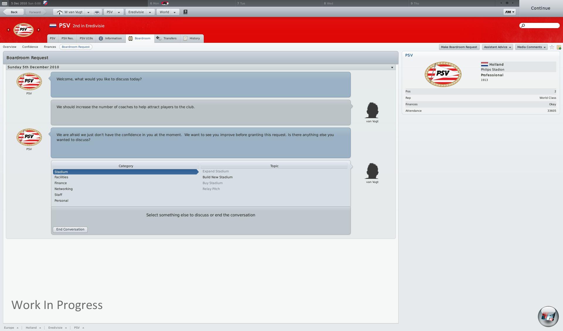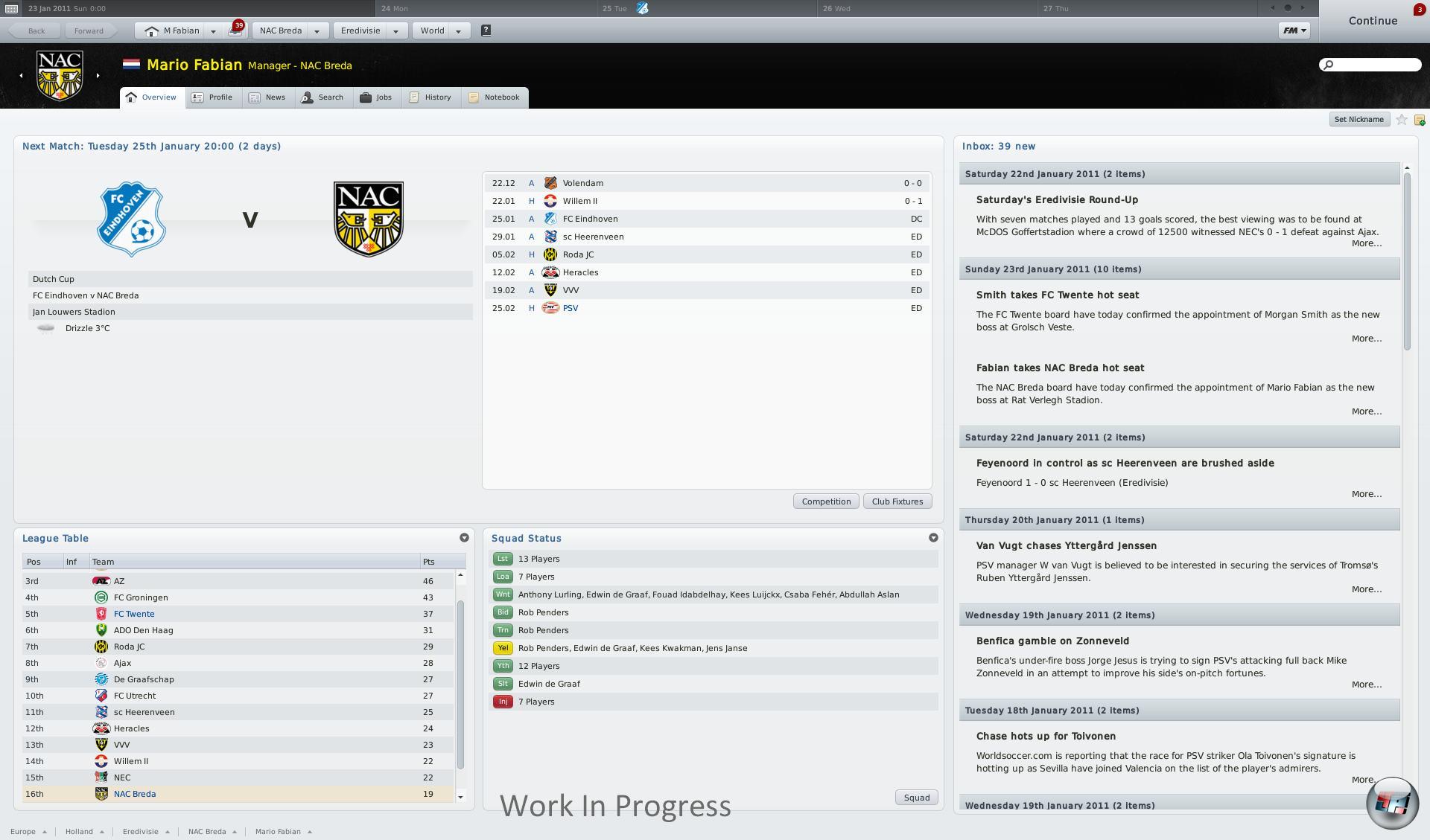 Ich habe zusammen mit meinen Co-Trainern und Scouts Analysen durchgeführt, welche Spieler sich im  Training mit welchen Methoden verbessern können, Trainingspläne erstellt und nach einigen erfolgreichen Freundschaftsspielen ging es schließlich mit einem Sieg in die Saison. Ich hätte zwar noch gerne noch ein oder zwei Spieler verpflichtet, doch wie mir der