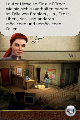 Leider wurde nicht die ganze Sprache übernommen, so dass man auch viel lesen muss. Die ganzen anderen Gespräche, bei denen man zumindest grob das Thema bestimmen kann, sind nämlich leider nicht vertont. Ninas Humor leidet unter der schnöden Schriftform zum Glück nur ein wenig, denn sie kommt so spöttisch bis bärbeißig rüber wie man das von ihr kennt. Die geborene Skeptikerin wäscht dem einen oder anderen Jünger von Puritas Cordis den Kopf, dass es eine Freude ist. Die anderen Charaktere fallen dagegen leider ab, einzig Nebenrollen wie der Portier auf dem Schiff sind fast ebenso charismatisch wie die rothaarige Russin.