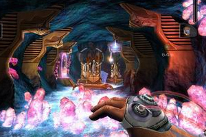 Die Suchmission führt euch durch metallisch sterile Labore, einen knallbunten Dschungel, eine Wasserwelt und auch ein Besuch auf dem Zentralplaneten des galaktischen Imperiums darf nicht fehlen. Dabei fallen sowohl die eigenwillig bunte Farbpalette als auch das Design auf. So findet ihr im Dschungel kräftige Farben und in den Laboren hängen seltsame organische Schläuche von den Decken – ziemlich bizarr. Längst nicht so gelungen ist der Aufbau der Levels: Ihr bewegt euch auf einer linearen Einbahnstraße, die preiswert aus eckigen Blöcken zusammengepuzzelt wurde. In der Dschungelwelt stößt dieses Baukastensystem nicht ganz so übel auf wie in den Innenräumen, nervig ist es aber allemal. Genau hier werden Erinnerungen an den Shooter Evolva wach, dort musste sich der Spieler nämlich durch ähnlich abgedrehte Levels kämpfen und wurde von bizarren Kreaturen überrascht.