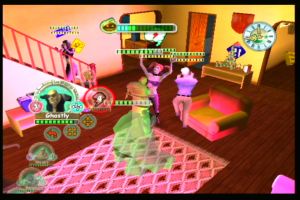 Dabei ist die Benutzerführung für die Umsetzung eines PC-Spiels auf Konsole eigentlich vorbildlich. So ruft ihr über die Schultertasten Auswahlkarusselle eurer zur Verfügung stehenden Geister bzw. aller potentiellen Opfer auf, wo ihr auf Knopfdruck Bewegungsanweisungen gebt, individuelle Spukfähigkeiten aktiviert oder erläuternde Hilfstexte einblendet. Eure Gespenster sind dabei in unterschiedliche Kategorien eingeteilt, während eure Zielpersonen individuelle Schwachpunkte haben. So verringern manche Geister die Widerstandskraft eurer Opfer, während andere leibliche Schmerzen zufügen, als Lockvögel dienen, zu bestimmten Taten anstiften oder eine einschläfernde bzw. heilende Wirkung haben. Letzteres ist vor allem wichtig, um essentielle Personen an der Flucht oder mögliche Widersacher am Aufwachen zu hindern.