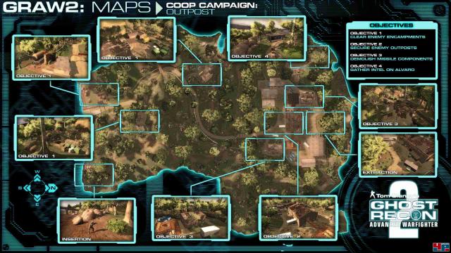 Das zweite große Standbein der Ghost Recon-Serie war neben der Kampagne schon immer der Multiplayermodus. Auch Advanced Warfighter 2 hat in dieser Hinsicht enorm viel zu bieten. Neben Standardmodi wie Deathmatch, Team-Deathmatch, Capture the Flag oder Eroberung gibt es auch hier wieder eine separate Online-Kampagne, die inhaltlich mit dem Hauptspiel verknüpft ist. Als Besonderheit ist es erstmals möglich, die sechs großen Missionen der Online-Kampagne mit bis zu 16 Teilnehmern in Angriff zu nehmen – also der gleichen Anzahl, mit der ihr auch in den anderen Modi in den Kampf zieht. Die Kampagne des Hauptspiels dürft ihr allerdings nicht gemeinsam mit Freunden kooperativ bestreiten. Genau wie bei R6: Vegas sind die vielen Einstellungsmöglichkeiten auch hier vorbildlich, so dass ihr Sessions ganz nach euren Vorlieben aufsetzen könnt. Reserviert z.B. Plätze für eure Freunde, lasst nur bestimmte Waffen zu, regelt die Respawns oder legt Punkte- und Zeitlimits fest. Selbst an die Erstellung eigener Clans wurde gedacht, so dass sich schnell schlagkräftige Gruppierungen bilden werden, die in bewerteten Spielen gegeneinander antreten. Gelungen sind auch die Koop-Missionen, in der Spieler gemeinsam gegen KI-Schergen antreten – vergleichbar mit der Terroristenjagd aus Vegas. Und genau so hart geht es auch hier zur Sache: Schon auf der mittleren Stufe sind eure Gegner knallhart und gefährlich. Wer hier nicht aufpasst oder nicht im Teamwork agiert, ist schon tot, bevor er überhaupt weiß, wo die Schüsse herkamen. Doch die KI ist nicht immer nur euer Feind: In Modi wie dem Team-Kampf stehen euch neben Mitspielern auch KI-Soldaten als Unterstützung zur Seite. Klar, dass ihr euch auch via Systemlink oder mit bis zu vier Spielern am Splitscreen die Kugeln