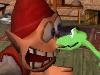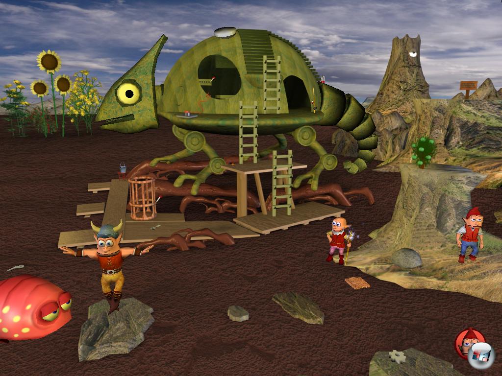 Die Entwickler bei Societé Pollene pfeifen auf all den pompösen Prunk. Feinsinnige Dialoge gibt’s in Gobliiins 4 ebenso wenig wie eine packende Geschichte oder aufwändige Grafik. Schon das Hauptmenü erinnert eher an ein Hobby-Projekt als an eine Edel-Grafik im Stil von The Book of Unwritten Tales: Ein kleines Männchen fuchtelt vor einem undefinierbaren Holzgebilde wild mit den Armen in der Luft herum. Als Nächstes morphen auch noch die Pupillen der daneben stehenden Figur zu einem an Reptilien erinnernden Schlitz. Das Erbegnis erinnert irgendwie an den ähnlich gruseligen Ganon aus den Zelda-Spielen für das Philipps CDi.![]()