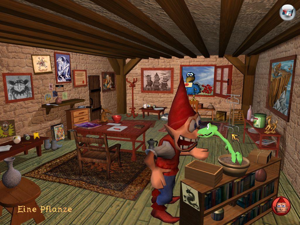 Ohne langes Geschwafel oder ein Intro werde ich ins kalte Wasser geschmissen: Ich finde mich im trauten Heim des Goblins Tchoup wieder. Ein Vogel fliegt durch das Fenster und singt eine Melodie, die klingt wie ein leiernder Kassettenrekorder, der das Band gefressen hat. Im Anschluss an seine Darbietung überbringt er mir die beunruhigende Nachricht, dass der König in Sorge sei. Bevor ich meine zwei anderen Goblin-Kollegen zusammentrommeln und zu meinem geliebten Herrscher eilen kann, muss ich – wer hätte es gedacht – mein Zimmer verlassen. Das funktioniert aber nur, wenn ich zunächst einmal meine zum Vegetarier umerzogene fleischfressende Pflanze mit einer angemessenen Menge an sauren Gurken gefüttert und andere ähnlich weltbewegende Kleinigkeiten erledigt habe.