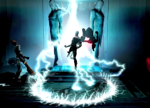 | Göttliche Macht in Aktion: Ihr könnt eure Feinde elektrisieren, zu Stein verwandeln oder mit Blitzen bewerfen. |