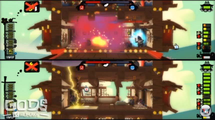 Nett ist hingegen die Möglichkeit, sich diesen Herausforderungen oder bereits gemeisterten Storyabschnitten zu zweit zu stellen. Allerdings spielt man dabei nicht mit-, sondern gegeneinander: Wer die aktuell gestellte Aufgabe zuerst meistert, gewinnt. Schade ist nur, dass das Ganze lediglich via Splitscreen angeboten wird, wo man stets sieht, was der Konkurrent gerade macht. Online-Duelle wären sicher wesentlich spannender gewesen; ein Bonus ist der Mehrspielermodus aber auch in dieser Form. Auch am Umfang gibt es nichts auszusetzen: Neben 64 Story-Missionen warten auch noch 16 Herausforderungen darauf, bewältigt zu werden. Zudem kann man bereits gemeisterte Abschnitte später auf höheren Schwierigkeitsgraden wiederholen und zusätzliche Gottheiten sowie spielinterne Erfolge freischalten.