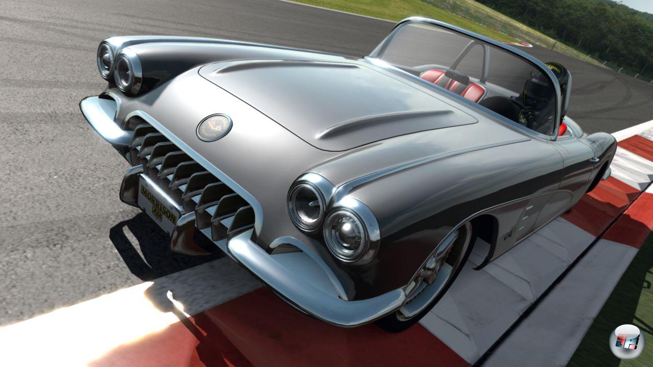 in diesem Fall einen Ferrari 430, aufbringen müsst. Hier wäre es sinnvoller gewesen, mehr Events zu bieten, anstatt dem Spieler ständige Wiederholungen aufzuzwingen. Zwar findet ihr auch bei den Fahrzeugherstellern diverse Wettbewerbe, doch sind auch diese meist auf bestimmte Modelle begrenzt. Etwas nervig präsentiert sich allerdings die Menüführung, die mich immer wieder in die Garage zwingt, um das passende Auto auszuwählen. Mit den aktuellen Update ist es allerdings möglich, direkt aus dem Veranstaltungsmenü in die Garage zu springen, um den Wagen zu wechseln. Genau wie schon in GT4 präsentieren die Entwickler neben den Standardrennen auch so genannte Fahr-Herausforderungen, bei denen ihr eine bestimmte Anzahl an Fahrzeugen überholen oder eine Rundenzeit unterbieten müsst – PGR lässt grüßen. Eigentlich eine prima Idee, die für Abwechslung sorgt. In diesem Fall ist das Balancing allerdings gründlich in die Hose gegangen: Während ihr nach normalen Rennen – ein entsprechend gutes Fahrzeug vorausgesetzt – meist ganz oben auf dem Podest landet, beißt ihr euch an den Herausforderungen die Zähne aus und schafft es meist nur bis zum Bronze-Pokal. Ich bin vielleicht kein Überflieger am Lenkrad, aber sicher auch kein schlechter Fahrer und frage mich immer noch, wie man manche Gold-Anforderungen erfüllen soll. Vor allem, wenn das Fahrzeug vorgeschrieben ist und ihr keine Änderungen am Setup durchführen dürft. Hier sorgt Polyphony für Frust und Kopfschütteln gleichermaßen. Doch auch in den normalen Rennen habt ihr nur dann eine Chance, wenn ihr viel PS unter der Haube habt. Hier hätte ich mir manchmal gewünscht, dass das Fahrerfeld an den eigenen Wagen angepasst wird und nicht umgekehrt – vor allem auch deshalb, weil die Startaufstellung meist zu bunt gemischt ist und sich zwei bis drei Fahrer an der Spitze oft deutlich von den anderen absetzen.