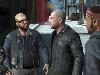 Von der ersten Ankündigung an war klar, dass sich TLAD um Biker dreht – klar, dass man die meiste Zeit auf einem mächtigen Hobel Marke »Beinhart wie’n Rockä!« verbringt. Und was eine richtige Biker-Gang ist, fährt immer im Konvoi: Bleibt man einigermaßen diszipliniert in Formation, entspinnen sich wunderbar unterhaltsame Dialoge, außerdem wird so das Bike automatisch repariert – hin und wieder spornt man sich gegenseitig sogar zu kleinen Wettrennen zum Ziel an. Klar kann man auch absteigen, Wagen knacken und auf vier Rädern von dannen düsen – aber das wirkt hier irgendwie würdelos. Das Fahrmodell der Hobel wurde im Vergleich zum Hauptprogramm etwas verändert und arcadiger gemacht, so dass man kaum noch runterfällt. Allerdings reagieren gerade die Chopper neuerdings extrem sensibel auf Höhenunterschiede – ein einfacher Bordstein kann dadurch unerwarteterweise schon mal Grund für einen Frontside 360 Flip mit anschließendem Schädel-Manual sein.