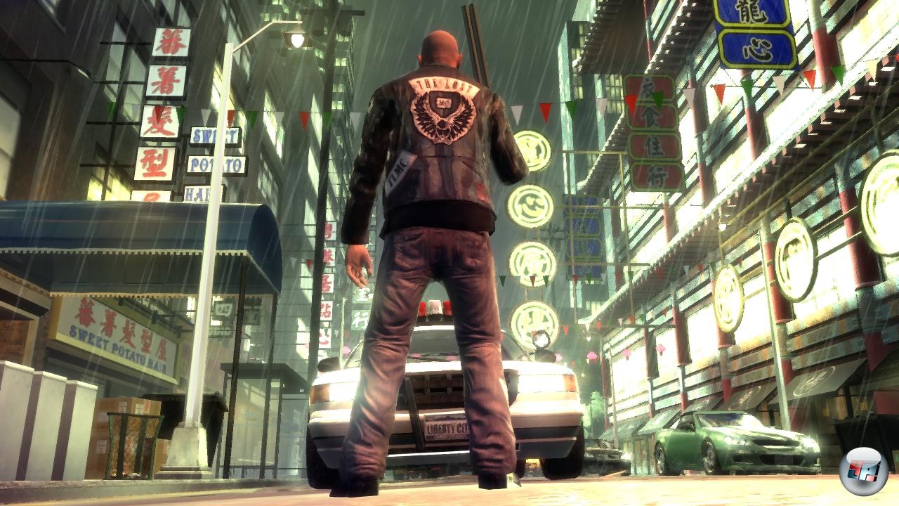 erinnern. Geht es einem zu friedlich zu, lassen sich auch Gang-Kriege vom Zaun brechen. Dazu kommen die obligatorischen GTA-Zeitvertreibe wie Auftrags-Klaus von Bikes oder Späße wie Armdrücken oder Kartenspielen im Clubhaus. Die soziale Komponente von GTA 4 kann diesmal aber völlig vernachlässigt werden; wem das ständige Hinterhertelefonieren und Stripclub-Besuchen auf die Nerven ging, wird hier erleichtert aufatmen: Zwar ist Johnnys Handy auch ständig am Brummen, aber fast immer geht’s dabei um Aufträge, nicht um Dates. Nicht falsch verstehen: Nach wie vor kann man Frauen im internen Internet kennen lernen oder mit Kumpels einen saufen gehen. Man muss aber nicht mehr. Ist doch viel entspannender, mal eine gemütliche Runde QUB3D zu spielen oder das abendliche Fernsehprogramm zu genießen. Übrigens braucht man dieses mal auch nicht darauf zu warten, dass eine Brücke fertig gestellt wird – Liberty City ist von Anfang an in seiner vollen Größe verfügbar.