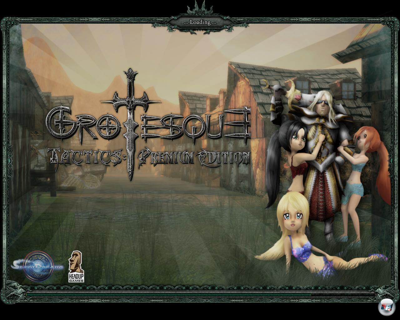 Zudem hat jeder Held eine Macke, die irgendwann von selbst losgeht: Holy betäubt Freund und Feind durch sein Geschwätz, was zumindest beim ersten Mal für Erheiterung sorgt. Das Kämpfen läuft allerdings simpel ab, auch was die taktischen Möglichkeiten angeht: So ist zwar eine gewisse Planung vonnöten, aber großartig ausgeklügelte Attacken wie bei Heroes of Might & Magic sind kaum erforderlich. Selten genug muss man mal die Gruppe teilen, um von mehreren Seiten zu attackieren, was aber keine Vorteile bringt. Die Jungfrauen muss man in Schutz nehmen, da sie nur Bögen haben und nicht viel aushalten. Meist sind die Gegner schnell getötet, so dass das auch Massen keine große Herausforderung sind. Immerhin kann man den Schwierigkeitsgrad etwas hochschrauben; Grotesque bleibt aber auch im weiteren Verlauf ein eher simples Spiel. Zudem können Tote bei einer Rast in Westwind wiederbelebt werden.