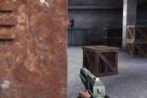 streng linear und furchtbar eckig gestaltet. Die Blockarchitektur protzt mit eckigen Kisten, eckigen Fässer, eckigen Schränken. Alle Wände sind mit matschigen Texturen überzogen – die „Engine“ kann scheinbar nur Braun, Weiß und Blau darstellen. Zeitgemäße Effekte wie Pixel-Shader oder dynamische Licht- und Schattenwürfe fehlen ebenso wie der auf der Verpackung propagierte „garantierte“ Spielspaß.