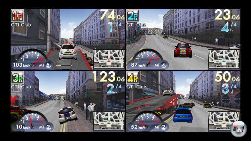 Während man der Automatenvorlage auf der PS3 wenigstens noch einen kleinen HD-Anstrich verpasste, wirkt GTI Club auf Wii hoffnungslos veraltet. Dabei kann Konami die Schuld für die tristen Flimmer-Kulissen, groben Texturen und Slowdowns nicht einfach der schwächeren Wii-Hardware in die Schuhe schieben: Titel wie Need for Speed: Nitro oder Mario Kart zeigen, dass man deutlich mehr aus der Konsole herauskitzeln kann, wenn man es nur will. Was Konami aber hier auf dem Bildschirm abliefert, ist trotz des leichten Retro-Charmes eine Beleidigung für Augen und Ohren, denn auch der Düdel-Soundtrack sorgt mit den unterirdisch schlechten Soundeffekten sowie flachen Motorenklängen für ein hilfloses Kopfschütteln.