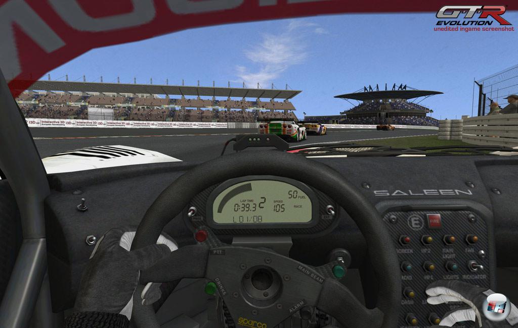 Ich lege einen etwas anderen Maßstab an und schaue stattdessen ganz genau hin, wenn ich den Abschnitt am „Brünnchen“ passiere. Warum? Weil ich hier selbst oft genug am Wochenende stehe und den Möchtegern-Rennfahrern zuschaue. Wird auch im Spiel der staubige Parkplatz zusammen mit dem kleinen Hang und am besten noch der Imbissbude originalgetreu eingefangen, dann weiß ich, dass sich die Entwickler wirklich Mühe gegeben und im Idealfall sogar selbst persönlich vor Ort waren. Leider versagt GTR Evolution bei beiden Messlatten: Statt Parkplatz und Zuschauer erwartet euch am Brünnchen nur eine platte, grüne Textur – durchgefallen! Und die Nürburg? Ja, die Ruine ist da, wird aber selbst bei maximalen Details durch den langsamen Grafikaufbau erst so spät ins Bild geploppt, dass man fast schon wieder an ihr vorbei ist, bevor sie auftaucht. Auch die Streckenführung entspricht nicht ganz genau dem Original, doch kann man darüber vielleicht noch hinweg sehen. Trotzdem ist es etwas befremdlich, dass Modder einen deutlich besseren Job abliefern als SimBin selbst. Wer schon einmal die Nordschleifen-Modifikation in rFactor <a class="DYNLINK" onmouseover="DynToolTipp_Show('Klicken für Gameinfos‚)“ onmouseout=“DynToolTipp_Hide(); “ href=“javascript:DynCont_Display(‚Gamefinder‘,’runmod.php?sid=%7BSID%7D&LAYOUT=dyncont_gf&spielid=5925′)“> gefahren ist, wird feststellen, dass sich diese deutlich näher am Original bewegt. Auch für GTR <a class="DYNLINK" onmouseover="DynToolTipp_Show('Klicken für Gameinfos‚)“ onmouseout=“DynToolTipp_Hide(); “ href=“javascript:DynCont_Display(‚Gamefinder‘,’runmod.php?sid=%7BSID%7D&LAYOUT=dyncont_gf&spielid=5477′)“> und GTR 2 <a class="DYNLINK" onmouseover="DynToolTipp_Show('Klicken für Gameinfos‚)“ onmouseout=“DynToolTipp_Hide(); “ href=“javascript:DynCont_Display(‚Gamefinder‘,’runmod.php?sid=%7BSID%7D&LAYOUT=dyncont_gf&spielid=9056′)“> gibt es entsprechende Umsetzungen, die zudem kostenlos erhältlich sind. Es ist zwar schön, dass sich auch SimBin endlich dieser fantastischen Strecke angenommen hat, aber das große Killer-Argument zur Anschaffung von GTR Evolution ist sie angesichts der besseren Alternativen nur bedingt.