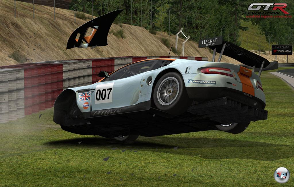 Zudem steht die Nordschleife exemplarisch für die PS unter der Technikhaube: Zwar flutscht die Action butterweich über den Bildschirm und ihr habt alle erdenklichen Möglichkeiten, die Performance eurem System anzupassen, doch selbst mit maximalen Details und hohen Auflösungen sehen die Kulissen sehr bieder und leblos aus – große Fortschritte scheint es seit GTR2 aus dem Jahr 2006 nicht mehr gegeben zu haben und so tummeln sich auch hier immer noch starre 2D-Bitmaps auf den Tribünen, während z.B. auch bei Licht- sowie Grafikeffekten auf Sparflamme gekocht wird und immer wieder Pop-Ups bzw. Fade-Ins stören. Selbst die Fahrzeuge können längst nicht bei solch detaillierten Prachtexemplaren wie aus Gran Turismo Prologue mithalten, doch verfügen die Boliden hier wenigstens über ein Schadensmodell. Dies fällt optisch allerdings etwas rudimentär aus und so halten sich die Anzahl der Beulen oder abfallenden Teile in Grenzen – nicht einmal die Scheiben wollen nach heftigen Einschlägen ordentlich zerbersten. Trotzdem bekommt ihr hier mehr geboten als z.B. bei Ferrari Challenge auf der PS3 oder anderen Rennspielen wie PGR 4, die sich mit einem Schadensmodell brüsten, aber dann bis auf ein paar Kratzer nichts bieten. Hier geht die Detailfreude sogar so weit, dass Löcher in den Reifen entstehen können. Hinzu kommt, dass sich Unfälle merklich auf die Fahrphysik auswirken und ihr euch unter Umständen sogar einen Totalschaden einfahrt. Daneben können auch mechanische Defekte zu einem vorzeitigen Ende führen, falls ihr die Option aktiviert habt. Auf Wunsch dürft ihr das Schadensmodell aber auch komplett ausschalten und euch durch das Fahrerfeld durchrempeln. Insgesamt haben die anspruchsvolle Fahrphysik, das Schadensmodell und bis zu 24 Boliden auf der Strecke aber offenbar ihren Preis: Wenn man ein Race Driver: GRID direkt neben GTR Evolution sieht, glaubt man, zwei Spiele aus unterschiedlichen Generationen vor sich zu haben. Bleibt zu hoffen, dass SimBin hier in Zukunft etwas nachlegen wird, anstatt sich weiter auf bewährte Grafikengine zu verlassen, die mittlerweile nur noch eine stark angestaubte Präsentation erlaubt. Das wird auch in den Wiederholungen deutlich, die automatisch nach jeder Session abgespeichert werden.
