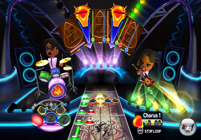 | Beeindruckend: Zwar mengelt es der Wii-Version optisch vor allem an Effekten, aber alles in allem bietet auch diese Fassung ein bemerkenswerten Gitarrenhelden-Erlebnis. |