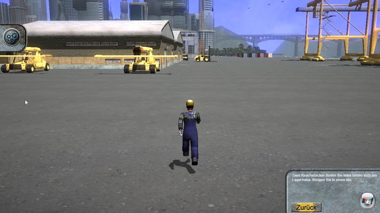 Und ganz ähnlich ist es, wenn man sein Fahrzeug mal ins Hafenbecken versenken will, was in einem waschechten Hafen schon mal vorkommen soll. Es geht nicht, da man jäh gestoppt wird. Von einem authentischen Eindruck ist man auch meilenweit entfernt, wenn man mal das Vehikel verlässt, denn der Typ sieht einfach lächerlich aus. Er erinnert eher an eine unförmige Playmobilfigur denn an einen Hafenarbeiter. Dazu passen auch die roboterhaften Bewegungen; er bewegt sich zudem so langsam, als hätte er gleich Feierabend. Per Beschleunigungstaste gewinnt er an Fahrt und kommt endlich am nächsten Fahrzeug an. Die immergleiche Umgebung lädt also nicht gerade zur Erkundung ein, sondern eher zum schnellen Feierabend.