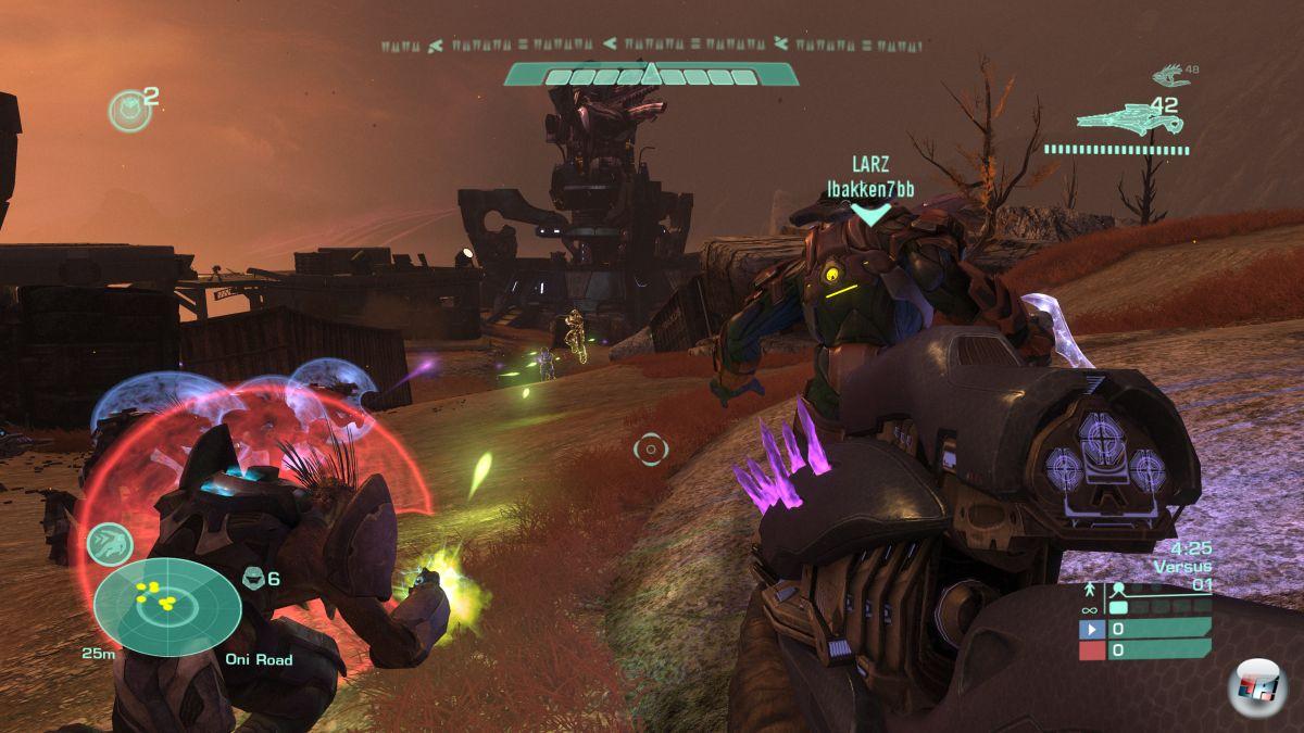 Ein fertiggestelltes Kunstwerk lässt sich per Datei-Sharing tauschen. Das funktioniert übrigens auch mit Bildern, eigens erstellten Spielmodi und Filmclips, welche wie in Halo 3 mit der »Kino«-Funktion bearbeiten werden. Eine praktische Neuheit ist die Beitritts-Warteschlange, mit welcher im Spiel befindliche Freunde nach dem Match in eine Gruppe zusammengeführt werden. Ebenfalls nützlich ist das „Psychologische Profil“. Keine Bange; Microsoft hat keine Profiler damit beauftragt, die Zurechnungsfähigkeit ihrer Spieler zu überprüfen. Stattdessen darf man in diversen Optionen auswählen, mit welchem Teil der Halo-Community man verbunden werden möchte: Mit gesprächigen oder ruhigen Zockernaturen, mit höflichen oder agressiv kreischenden Shooter-Fans; mit Teamspielern oder Einzelgängern, kompetetiv oder just for fun.