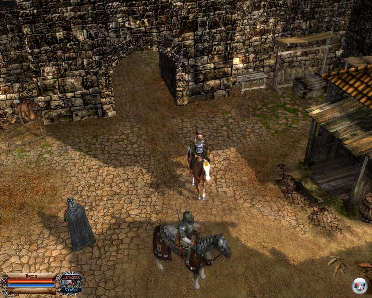Wieso tue ich mir das an? Weil es selbst die teils Grauen erregende Kampfmechanik, die auch Gefechte hoch zu Ross erlaubt, nicht schafft, die Qualität der Geschichte zu vernichten. Ja: Die Kämpfe sind ein nicht zu unterschätzender Bestandteil von HG – sollten sie in einem action-orientierten Rollenspiel auch. Doch für „Kloppmist“ bietet die Saga eine erstaunlich verzweigte, überraschende und spannende Geschichte, bei der deutlich wird, dass hier ähnlich wie bei Ataris The Witcher ein Buch als Vorlage für ein interessantes Universum hergehalten hat. Die mittelalterliche Fantasy-Welt, die ähnlich wie in Arcanum Schauplatz eines Kampfes zwischen Technologie und Feudalkultur ist, lässt mich als Spieler immer wieder im Ungewissen, was jetzt „Gut“ oder was „Böse“ ist. Und letztlich scheint alles sowieso nur eine Grauzone zu sein, was nicht nur durch den verwirrenden und verwirrten Helden versinnbildlicht zu sein scheint, der im Laufe der Zeit mit Technologie und gottgleicher Macht konfrontiert wird.