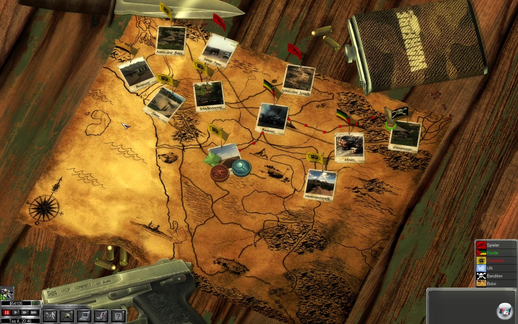 Generell unterteilt sich das Spiel in zwei Bereiche: Strategische Übersichts- und Planungsphase auf der Landkarte und der taktische Kampf im Sektor. Im Gegensatz zu Jagged Alliance 2 ist die Diamantenküste nicht vollständig in zig Bereiche unterteilt, sondern in mehrere wichtige Gebiete, die durch Fotos auf der klassischen Karte dargestellt werden. Mit der Zeit schaltet ihr quasi immer mehr Areale frei, die ihr natürlich befreien sollt. Hierbei fallen kleinere Veränderungen zum Vorbild auf, die das Mikromanagement entschlacken und die Zugänglichkeit verbessern sollen, was stellenweise gut und manchmal gar nicht funktioniert. Ein Beispiel für Letzteres ist der Wegfall des Tag/Nacht-Wechsels, schließlich brauchen echte Söldner keinen Schlaf.