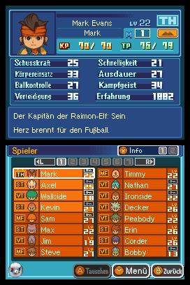 | Ein klassischer Party-Management-Bildschirm: Hinter Inazuma Eleven werkelt eine klassische Rollenspiel-Mechanik. |