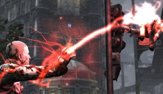 Das teuflische Rot zeichnet Cole, wenn er sich chaotischen Trieben hingibt – inFamous verändert je nach Spielweise sowohl den Helden als auch die Kulisse.