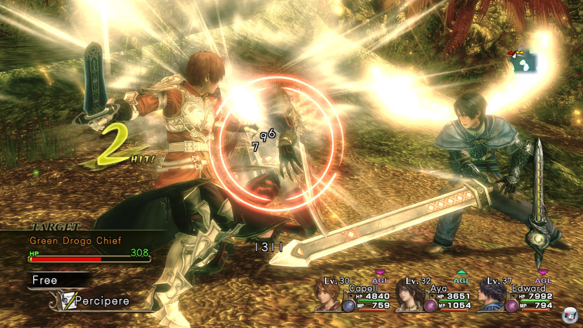 Die meiste Zeit seid ihr aber für gewöhnlich mit Erkundungen und Kämpfen beschäftigt. Wer viel Wert auf bestmögliche Ausrüstung legt, wird viel Zeit mit den Kämpfen verbringen. Dazu gezwungen werdet ihr jedoch nur selten, da sich die Gegner frei in der Spielwelt umher bewegen und die Auseinandersetzungen ähnlich wie bei Final Fantasy XII <a class="DYNLINK" onmouseover="DynToolTipp_Show('Klicken für Gameinfos‚)“ onmouseout=“DynToolTipp_Hide(); “ href=“javascript:DynCont_Display(‚Gamefinder‘,’runmod.php?sid=%7BSID%7D&LAYOUT=dyncont_gf&spielid=2280′)“>
