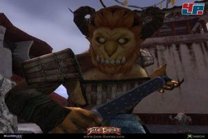 Immerhin kommt mit der Kulisse prächtige Farbe ins Spiel. Jade Empire ist eine ganze Klasse beeindruckender als das teilweise graue und dröge KotOR: Wenn man nach der Figurenwahl mit ersten zaghaften Schritten das Kloster erkundet, wird man gleich von einer Fülle an Farben und Eindrücken überflutet. Man betritt eine zauberhafte Welt, die mit ihren weichen Gold- und Rottönen, mit ihren leuchtenden Lampions und steinernen Statuen umgehend exotische Neugier entfacht. Gras und Laternen wehen im Wind, Räucherstäbchen qualmen idyllisch vor sich hin. Das absolute Sahnehäubchen genießt man später im göttlichen Himmel: Man wandert durch ein paradiesisches Panorama, umgeben von Regenbögen und gleißenden Lichtstrahlen – fantastisch!