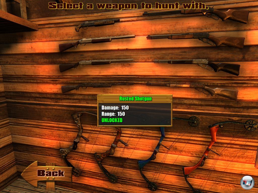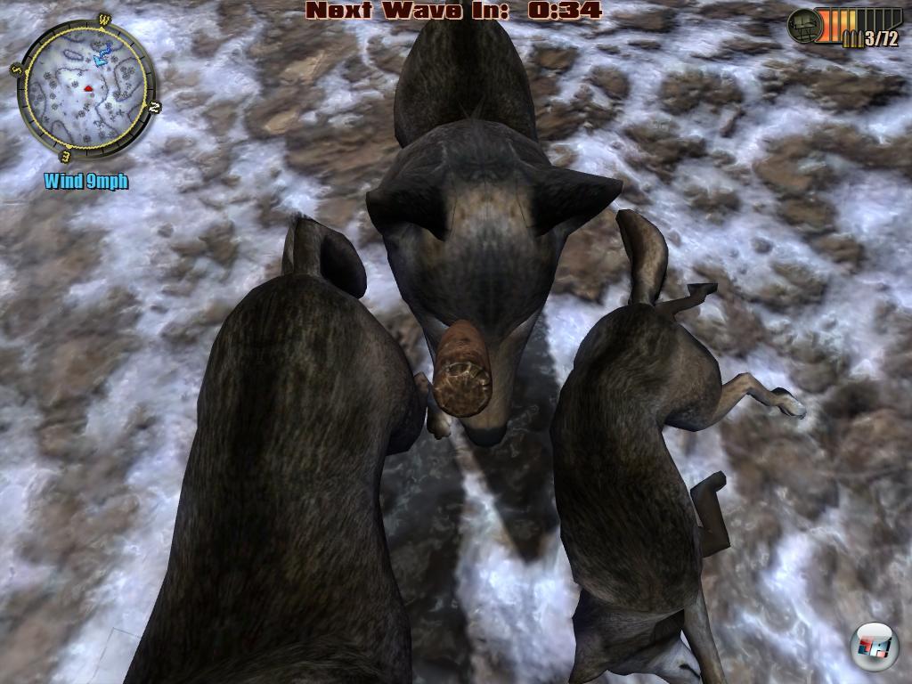 Besonders sinnfrei sind die Einsätze in denen ich doch tatsächlich auf meinem Hochsitz „Wellen“ von angreifenden Wölfen und Bären widerstehen muss, die wie von der Tarantel gebissen nichts Besseres zu tun haben, wie die Lemminge in das Mündungsfeuer meiner Schießeisen zu galoppieren. Lasse ich sie zu lange an meinem Hochsitz „kratzen“ fällt der um….ne is klar! Die Mission gilt dann als gescheitert. Geht’s noch idiotischer? Es spielt übrigens keine Geige, ob ich mit Pfeil und Bogen, mit Standardmunition oder mit Schrot ballere. Wie jeder weiß, eignet sich Letzteres nicht für Distanzschüsse…bei Valuesoft hat man davon anscheinend noch nichts gehört und so erledige ich per Pumpgun Damwild in etwa 300-400 Meter Entfernung – was für ein Schwachsinn!