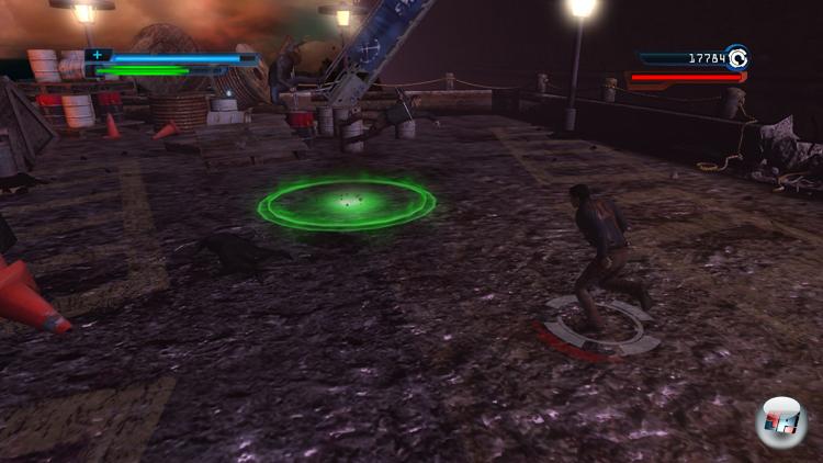 Hin und wieder dürft ihr eure Teleportationskräfte auch für primitive Hüpfeinlagen nutzen, um Hindernisse zu überwinden oder oft völlig belanglose Sammelobjekte zu ergattern. Neunzig Prozent des Spiels bestehen allerdings aus stumpfsinnigen Massenprügeleien gegen unterbelichtete Klonarmeen und nervige Bossgegner. Der einzige Lichtblick sind die ganz amüsanten Gegner-Entsorgesequenzen, die sporadisch eingespielt werden: Mal beamt sich Griffin an Bord eines angreifenden Helikopters, schlägt den Piloten KO und ergreift kurz vor dem Absturz die Flucht oder er teleportiert sich mit einem Gegner im Schwitzkasten in eine zuschnappende Schrottpresse, um den verwirrten Kontrahenten allein darin zurück zu lassen. Allerdings bekommt ihr diese Einspielungen völlig willkürlich (360) bzw. nur an bestimmten Stellen und lediglich in Spielgrafik (PS2 & Wii) zu sehen.
