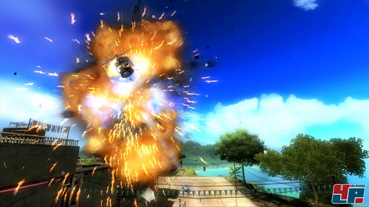 Das könnt man mit viel gutem Willen als „Befehlshörigkeit“ auslegen, wirkt hier aber nur wie eine schwache KI-Leistung. Andererseits steht bei Just Cause der überzogene Arcade-Action-Spaß im Vordergrund, so dass ich schweren Herzens darüber hinweg sehen kann.
