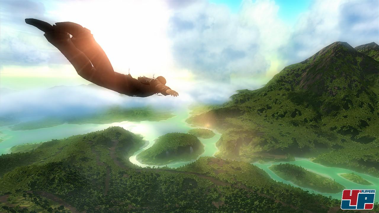 So ertappe ich mich immer wieder, wie ich mit meinem immer zu Verfügung stehenden Fallschirm entweder dem Basejumping fröne, mir irgendwo einen Hubschrauber schnappe, um einen Rundflug zu machen oder versuche, im Zusammenspiel aller zur Verfügung stehenden Bewegungsmöglichkeiten einen so spektakulären Stunt wie möglich zu machen: Flugs einen Hubschrauber geholt, in luftige Höhen aufsteigen, dort dann den Hubschrauber verlassen, beim freien Fall die Aussicht genießen, irgendwann den Fallschirm öffnen, dann von dort auf das Dach eines Autos springen, das Fahrzeug übernehmen, über eine Klippe steuern, wieder raus springen, Fallschirm auf und ab ins Wasser zum Tauchen. Und schwupps: sind schon wieder zehn Minuten vorbei&