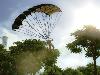| Mit Fallschirm und Greifhaken kommt man nicht nur schnell vorwärts, sondern hat handliche Werkzeuge zum freien Experimentieren. |