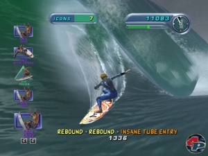 Tutorial, welches euch ausführlich mit allen kommenden Wellen-Widrigkeiten vertraut macht: In drei Stufen (Einsteiger, Fortgeschritten und Profi) lernt ihr alles über Grabtricks, Cutbacks, das Fahren in der Tube und natürlich die Kombination aus allem. Selbst das Aufstehen aufs Brett ist schon wichtig; ihr könnt es zu früh, genau richtig oder zu spät machen – bei letzterem nimmt die Welle in den meisten Fällen einen Surfer-Haps zu sich. Die Steuerung gehorcht den üblichen Tony-Standards, geht aber im wahrsten Sinne des Wortes etwas weiter in die Tiefe: Ihr könnt enge Kurven fahren, schneller oder langsamer werden oder Tricks innerhalb der Welle machen. Klingt für den Anfang etwas komplizierter, ist es auch, geht aber schon nach wenigen Minuten in Fleisch und Gamepad über. Per Tastatur geht’s zwar auch, ist aber aus Fingerverknotungsgründen nur begrenzt zu empfehlen.