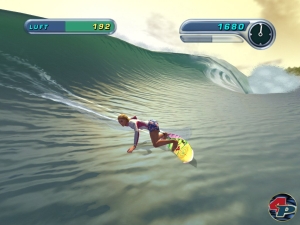 Eure Surfer sind zwar etwas grob geschnitzt, aber famos animiert, darüber hinaus seid ihr selten allein unterwegs – andere Raser wollen auch ein Stück der Welle für sich, und umschwirren euch. Dazu gesellen sich noch unterschiedliche Wetterbedingungen (für die sich die Surfer auch mal umziehen) und leider etwas grobpixelige Videos. Sonst ist an den Stränden dieser Welt grafisch nicht viel los, was aber in diesem Fall thematisch bedingt und somit verzeihbar ist.