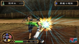 Die Geräuschkulisse ist da nur der Gipfel des Eisbergs, weil Shinbu wegen der ständigen Chi-Angriffe stets denselben Spruch zum Besten gibt. Das nervt schneller als man die PSP stumm stellen kann. Dabei braucht sich die akustische Begleitung sonst nicht zu verstecken: Fernöstliche Instrumente untermalen den historischen Ausflug ohne Pomp und bringen die fantastischen Landschaftsbilder richtig zur Geltung. Vor den bombastischen Tempelanlagen, wunderschönen Reisfeldern sowie beeindruckenden Berglandschaften erinnern lediglich die sehr spät auftauchenden Charaktere daran, dass ein Handheld die Aufnahmen zum Leben erweckt. Schade nur, dass mich die schlecht geschriebenen, pathetischen Dialoge immer wieder