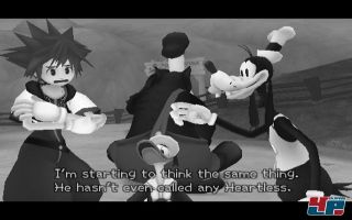 Ansonsten hat sich am Kampfsystem nicht viel geändert: Ihr führt mit Soras Schlüsselschwert Combos und Spezialattacken aus, wirkt Magie, blockt Angriffe, wirbelt mit beherzten Sprüngen durch die Lüfte, setzt ausgerüstete Items ein, tauscht Gruppenmitglieder aus oder beschwört bei Bedarf mächtige Aufrufe wie Dschinni oder Peter Pan herbei.