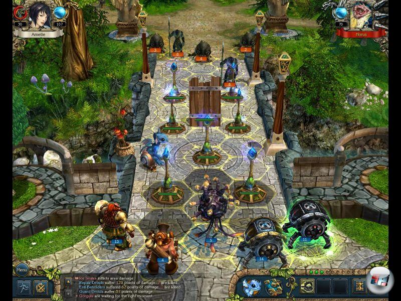 Ganz so einfach sind die Kämpfe trotzdem nicht, weil die sechs Schlachtfelder (auf zwei Inseln) einen eigenen Charakter haben und es Sichtlinienprobleme durch Wände, blitzende Verteidigungsanlagen oder Teleporter gibt – manchmal haben sie fast Puzzle-Charme. Dennoch ist der Kampagnenumfang wieder kurz geraten und eine markante Story oder auffällige Persönlichkeiten fehlen. Wie schon bei den Schlachten mit Arthur sind die taktischen Entscheidungen und Planungen in den Gefechten wichtiger als in der normalen Kampagne, weil die Ressourcen begrenzt sind und ihr mit den Truppenvarianten auskommen müsst, die euch angeboten werden. Nach jeder gewonnenen Schlacht wird Amelie dann mit reichlich Erfahrungspunkten belohnt und steigt (zusammen mit ihrem Drachen) meist mehrere Stufen auf.