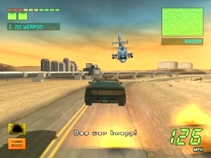 Genau wie der Vorgänger, ist auch Knight Rider 2 eine obskure Mischung aus Renn-, Baller- und Hüpfspiel: Einen großen Teil eurer kurzen Spielzeit rast ihr von A nach B, oft genug auch wieder von B zurück nach A, weil KITT am Ziel etwas eingefallen ist, das am Startpunkt erledigt werden muss. Dazwischen packt ihr Laser, Plasmawumme oder Raketenwerfer aus, um den gelegentlich aufkreuzenden Robotern oder ballerfreudigen Helikoptern einen Denkzettel zu verpassen. Zu mauer Letzt warten noch die Geschicklichkeitseinlagen: Dank des erwähnten Turbo Boots hüpft KITT leichtfertig wie ein Flummi über Wald und Wiese, dankbarerweise