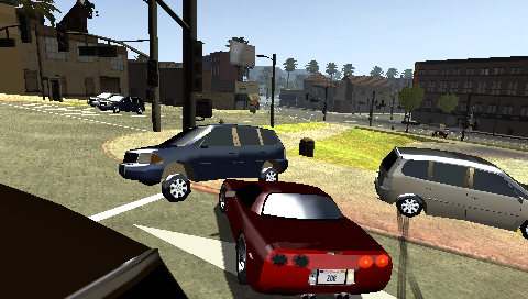 Autofahrer hat nicht schon mindestens einmal mit dem Gedanken gespielt, die störende Blechlawine einfach zur Seite zu rammen? In L.A. Rush könnt ihr genau das tun, und zwar ohne dass jemand zu Schaden kommt und ohne lästigen Papierkram. Motorisierte Verkehrsteilnehmer stellen kein ernstes Hindernis für euch dar: Selbst wenn ihr frontal in ein stehendes Auto kracht, wird eure Fahrt nur leicht abgebremst. Ein leichter Schlenker und es geht zurück auf die Strecke.