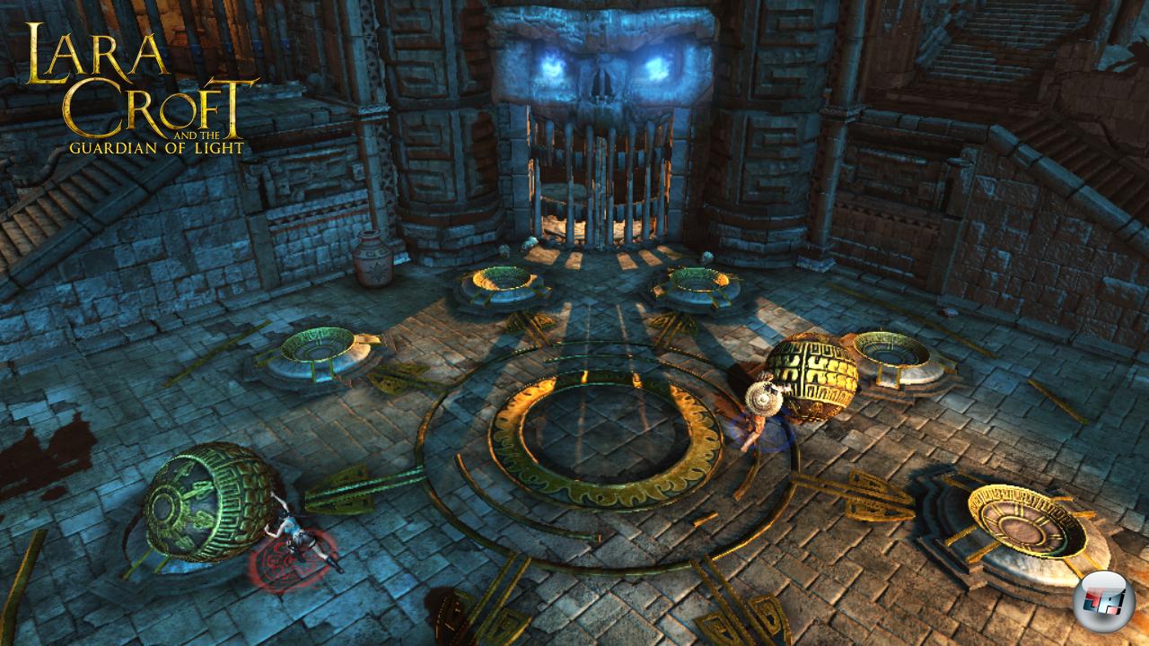 In dem etwas über 2 Gigabyte schweren Download steckt aber auch so bereits jede Menge Spielspaß. Selbst wer vorerst allein unterwegs ist, kommt auf seine Kosten, auch wenn der Titel erst zu zweit sein ganzes Potential entfaltet. Im Prinzip bekommt man fast zwei Spiele in einem, da man im Team teils völlig anders agieren muss als allein, auch wenn Schauplätze und Hindernissen eigentlich identisch sind. Etwas merkwürdig ist allerdings, dass man Totec, mit dem man ja eigentlich gemeinsam Jagd auf den durch einen Fluch heraufbeschworenen Dämon Xolotl und einem mächtigen Spiegel macht, als Solist lediglich in manchen Zwischensequenzen zu Gesicht bekommt. Ansonsten bietet aber auch das Solo-Abenteuer inhaltlich alles, was man im Duett erlebt, nur eben ohne direktes Teamwork und eventuellen Punktewettkampf – auch wenn der Koop-Aspekt letztendlich genau das ist, was Laras Download-Abstecher die verdiente Krone aufsetzt.