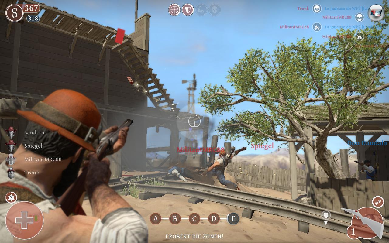 Im Grunde ist es das auch. Zwei kleine Gangs mit jeweils fünf Mitgliedern treten gegeneinander an: Sie ballern sich mit Colts und Schrotflinten die Schlapphüte vom verschwitzen Schädel, klauen Goldsäcke aus der Mine, jagen Brunnen mit Pulverfässern in die Luft oder nehmen eine vorgegebene Reihenfolge von strategisch wichtigen Punkten ein. Also alles so, wie man es aus etwas älteren Genrevertretern wie Call of Duty 3 kennt. Beim Respawn lässt sich eine Klasse auswählen; jede besitzt von Haus aus eine auf sie zugeschnittene Waffe sowie eine Spezialfähigkeit: Der Westernheld mit Schlapphut z.B. kann mit einer Hand über seinem Colt schnelle »Fanning«-Schusssalven abfeuern.